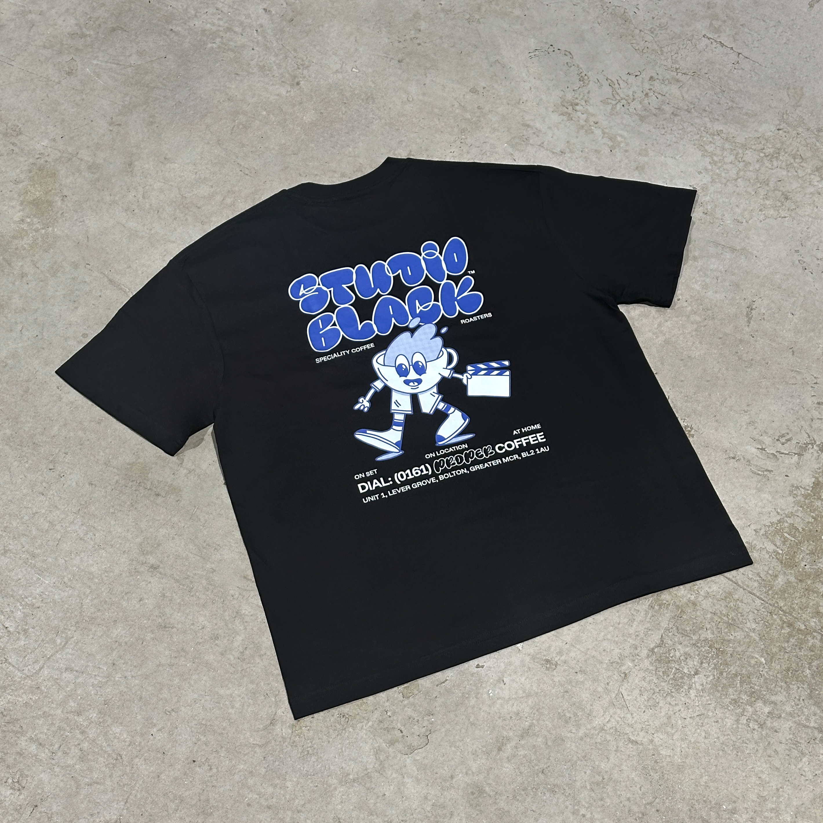 Featuring our signature mascot caught mid-scene, clapperboard in hand, ready to direct the next great moment - this tee is great on set or for hitting your daily coffee run. Show off to your mates that you know EXACTLY where the best coffee is roasted.