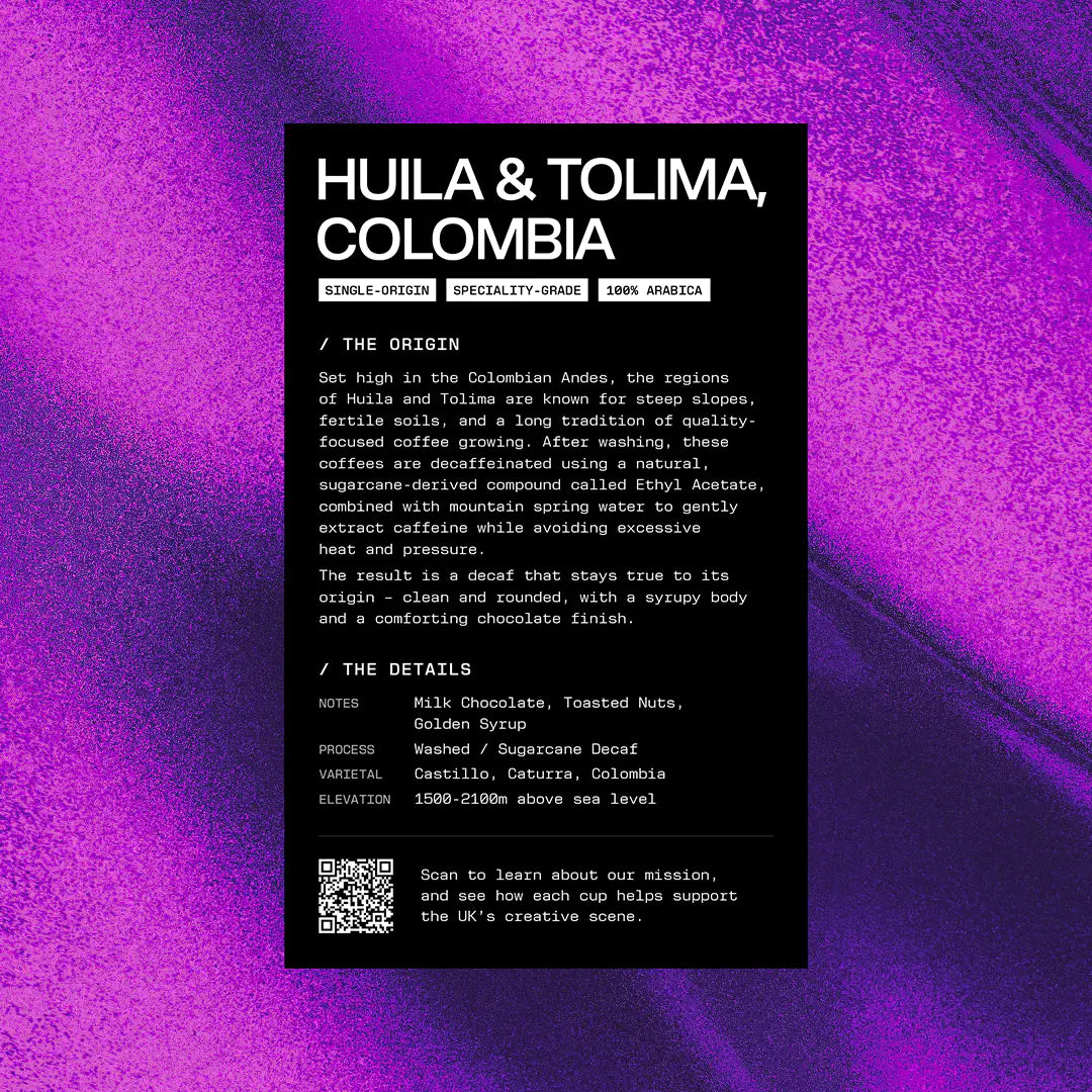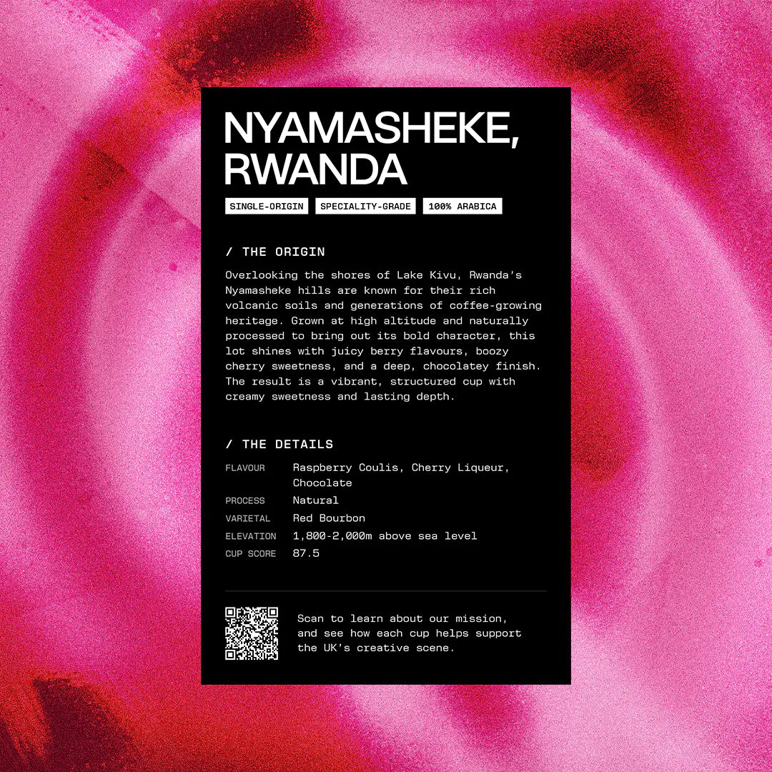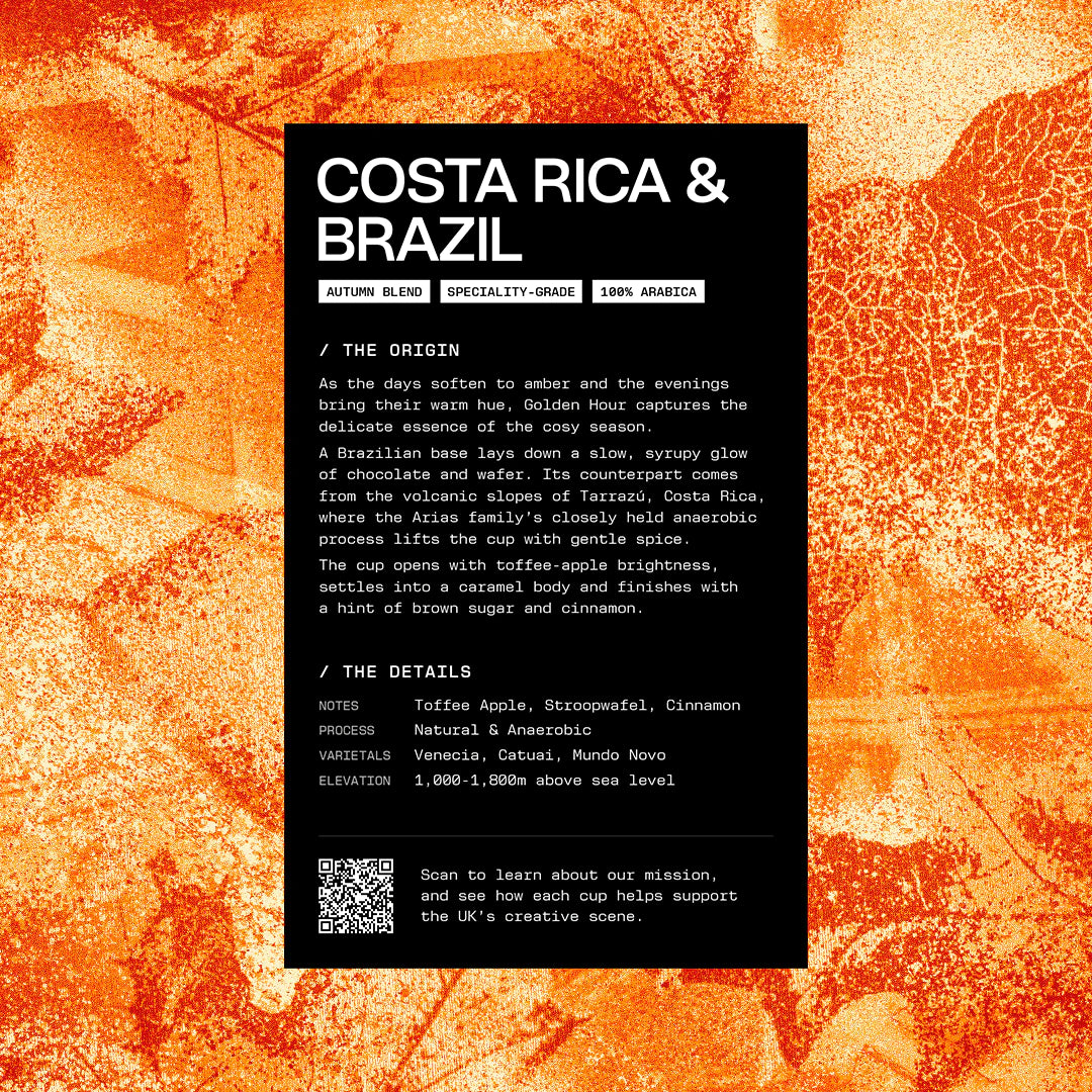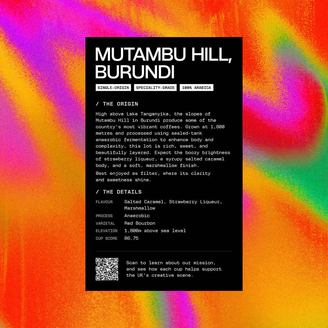Every coffee comes with its own tasting card, featuring origin details, processing information, flavour notes and cupping scores. Each card is designed in-house with bespoke artwork that captures the personality of the roast.